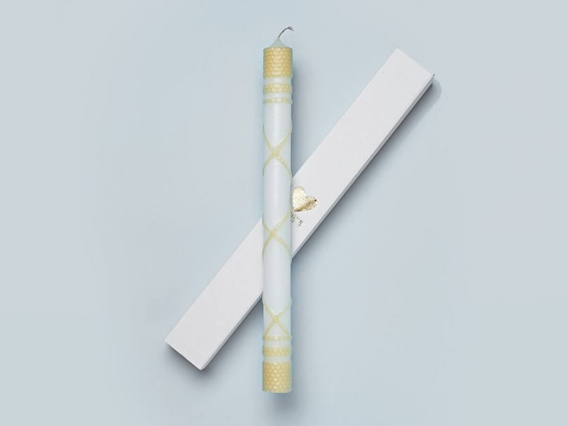 Die Taufkerze ist das Symbol der Geburt und eine immerwährende Erinnerung an die heilige Taufe. Sie ist handgefertigt aus natürlichem Bienenwachs, das in einem einzigartigen Verfahren natürlich an der Sonne gebleicht wird. Die Taufkerze versehen wir gerne mit einer Aufschrift entsprechend Ihrem persönlichen Wunsch.